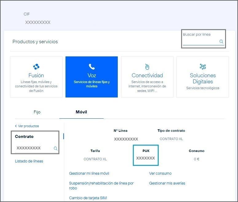 De manera online solo se facilita el PUK de la tarjeta principal.