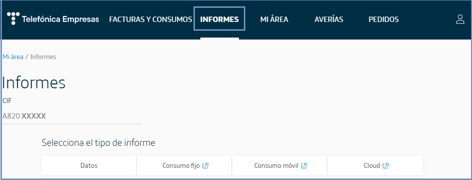 Los servicios disponibles (si los tienes contratados) sobre los que puedes obtener informes son: