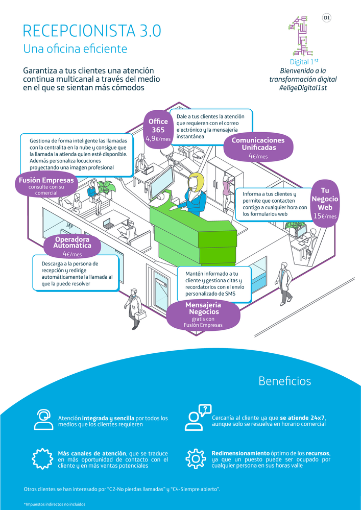 Telefónica Empresas, a través de Digital First te acompaña en la transformación de tu negocio para ganar en capacidades de atención comercial y diferenciarte de tu competencia.