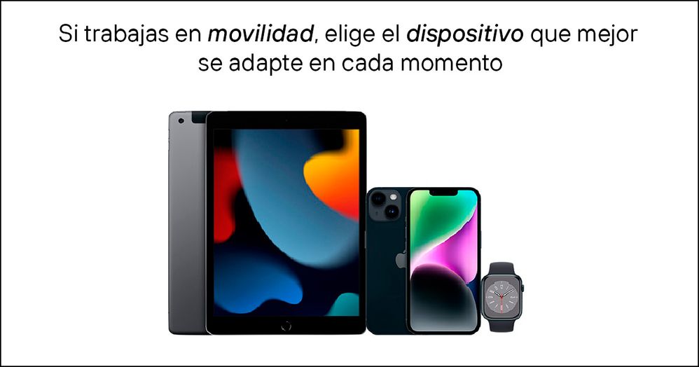 Elige el mejor equipamiento para trabajar en movilidad con la combinación perfecta, mejorando la comunicación con los equipos de trabajo: Tablet, Dispositivos 2 en 1 y Smartphone.