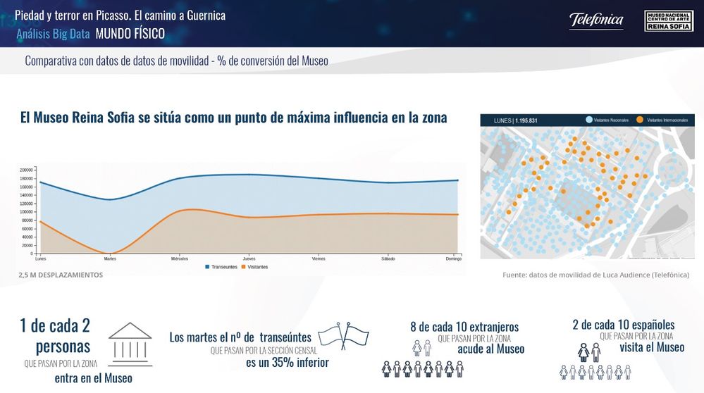 LUCA, a través de su consultora Synergic Partners, realizó un estudio analítico de los miles de datos generados por los visitantes de la exposición Piedad y Terror en Picasso. El Camino al Guernica en los cinco meses de duración (del 5 de abril al 4 de septiembre).