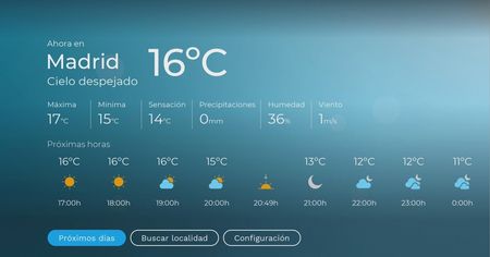 Sería interesante que apareciera en la Home de Movistar+ (Deco) la previsión meteorológica según se haya seleccionado en la app, junto a la información de la hora.