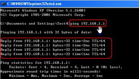 Para verificar que no existe problema en el router. En Windows, Inicio > Ejecutar > Escribir “ Cmd “, nos abrirá una ventana de Msdos. Escribiremos ping y la dirección de la puerta de enlace del router: