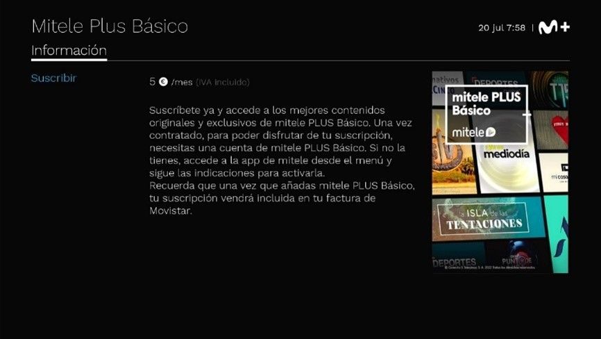 Suscripción mitele PLUS Básico.