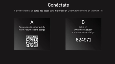 Si tienes claves de mitele podrás acceder a la aplicación en el descodificador e iniciar sesión en la sección Conéctate dentro de la aplicación. Para ello, puedes escanear el código QR con un dispositivo móvil e iniciar la sesión de mitele.
