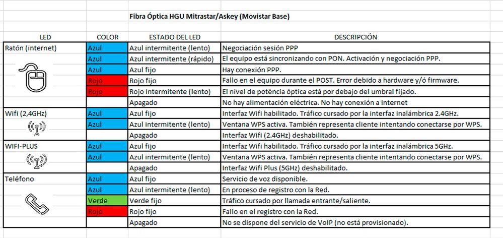En esta tabla tenéis resumido todos los leds y su funcionamiento: