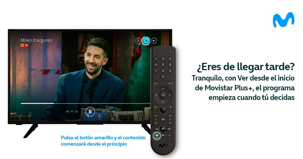 ¿Llegas a casa y ya ha empezado lo que querías ver en la tele? ¿Te has despistado preparando la cena y ha comenzado tu programa favorito? ¿Te ha llamado tu madre y el partido sigue su curso y no se detiene? ¡Tranquil@! Movistar Plus+ te lleva hasta el inicio de cualquier contenido con sólo usar tu mando.