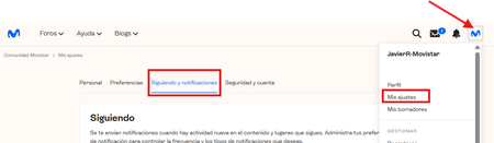 Pinchando en tu usuario, dentro de la sección mis ajustes, puedes configurar los avisos de la Comunidad para activar o desactivar las novedades de los temas en los que participas o estás siguiendo. L...