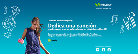 Emilio-MovistarCommunity Manager11-04-2013Concurso Spotify #movistarspotify Buenas tardes a tod@s ¿Quieres ganar unos auriculares Sony y un tablet Galaxy 10.1? Estas de suerte, nuestros compañeros de Twitter están celebrando un concurso para que conozcas Spotify,...Mostrar más