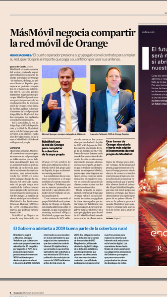SantirocaYo probé el VDSL26-12-2017Más movil negocia compartir toda la red movil de orange según informa expansión Mostrar más
