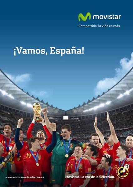 ¡VAMOS ESPAÑA!, ¡VAMOS SELECCIÓN! CON VOSOTROS AL FIN DEL MUNDO. OE, OE, OE, CAMPEONES, CAMPEONES, CAMPEONES, OE, OE, OE.