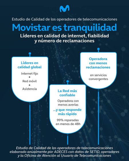 Movistar es tranquilidad: Líderes en calidad de internet, fiabilidad y número de reclamaciones