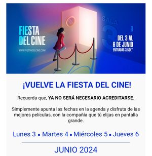 Contenido relacionado¡VUELVE LA FIESTA DEL CINE!¡VUELVE LA FIESTA DEL CINE!¡VUELVE LA FIESTA DEL CINE!