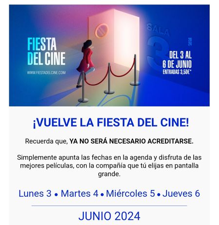 ArvisanYo probé el VDSL08-05-2024Vuelve la fiesta del cine ¡Vuelve la fiesta del cine! del 3 al 6 de junio 2024 Mostrar más