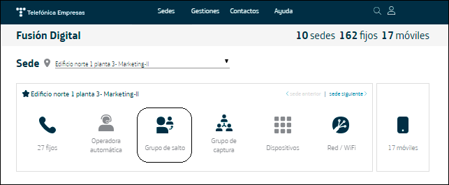 Grupo de salto nace con la finalidad de que sea el propio cliente quien pueda autogestionar los enrutamientos de las llamadas que recibe su empresa, disponible desde Fusión Digital.