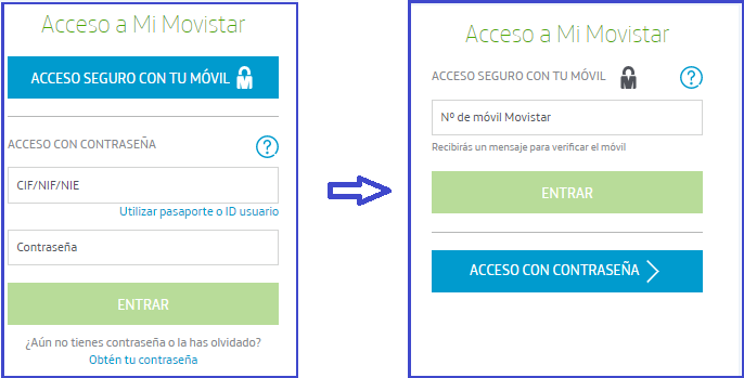 1- Debes pulsar en “Acceso seguro con tu móvil”, tal y como se muestra en la imagen.