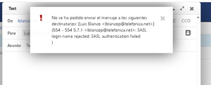 Hola. No puedo enviar correo. Al hacerlo me aparece este mensaje, tanto en Outlook como en web. He cambiado la contraseña pero no funciona. Saludos.