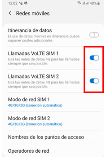 Android: Ajustes – Conexiones – Redes Móviles – Llamadas VoLTE