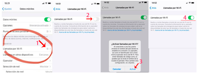 IOS: Ajustes > Datos Móviles > Llamadas por Wi-Fi