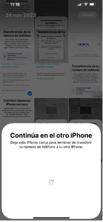 - En este punto, comenzará la descarga de la eSIM en el iPhone Destino, dejando al iPhone Origen sin servicio.