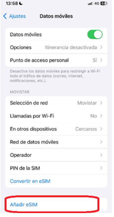- El iPhone debe estar conectado a una red wifi, ya que en el proceso la eSIM del iPhone "viejo" dejará de estar operativa y será necesario disponer de conexión a Internet para descargar del servidor de Telefónica el perfil eSIM en el iPhone "nuevo".