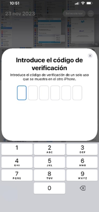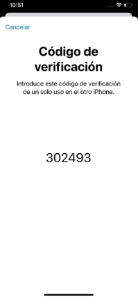 - Para finalizar la verificación, es necesario introducir en el iPhone Origen (Antiguo), el código que aparece en el iPhone Destino (Nuevo).