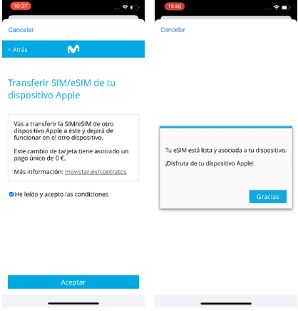 - La transferencia de eSIM es posible realizarla en el extranjero, el único requisito es que los dispositivos estén conectados a internet.