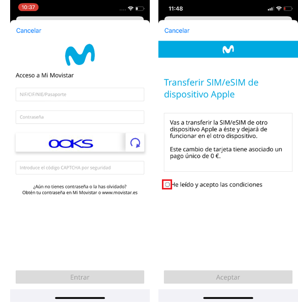 Hay que acceder utilizando NIF/CIF/NIE o Pasaporte. No son válidos los accesos con número de móvil.