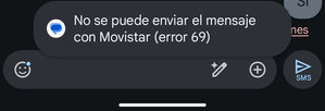 La aplicación mensajes genera un error al intentar enviar un SMS: "No se puede enviar el mensaje con Movistar (error 69)"