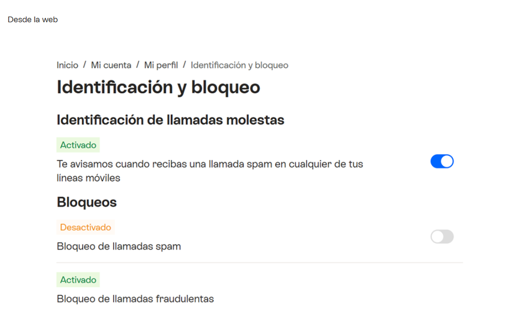 - Activar/Desactivar Bloqueo de llamadas spam.