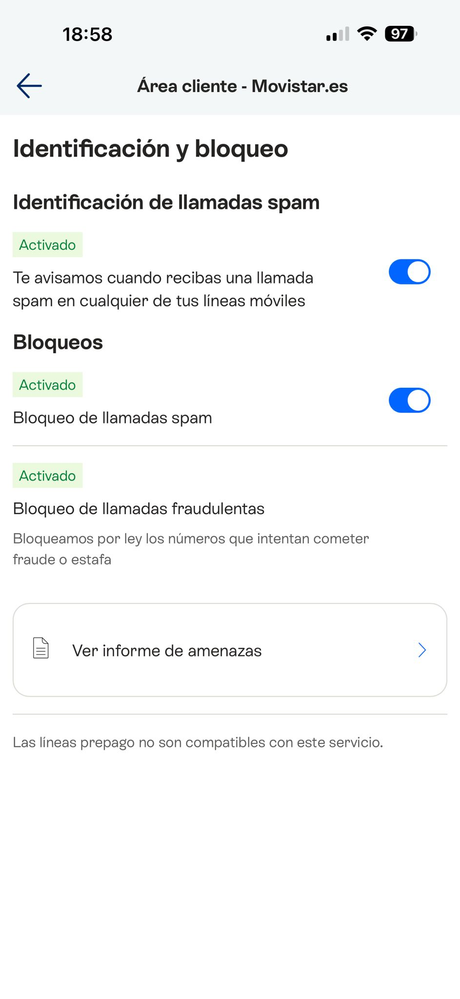 - Activar adicionalmente 'Bloqueos' o Bloqueo de llamadas spam