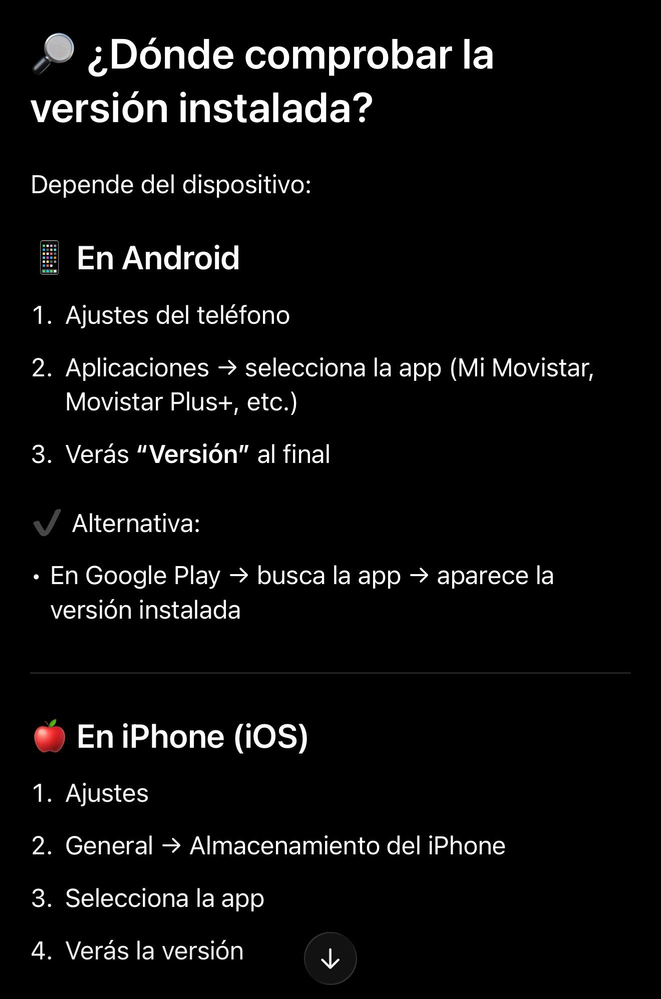 Versiones actuales MI Movistar disponibles y cómo comprobar que la versión instalada corresponde a la última y más reciente versión de la mencionada App.