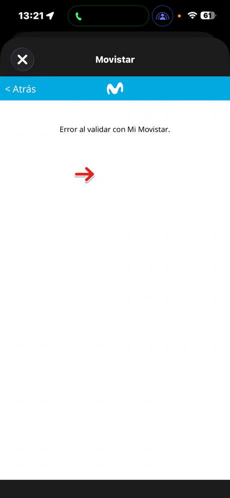 Error al validar con Mi Movistar. adjunto imagen.