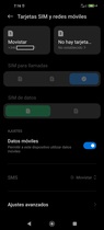 En las propiedades de Android de Tarjetas SIM y redes móviles solo aparece una SIM, la primera SIM aparece como que usa los datos pero las llamadas parece que usa una tercera SIM, tambien raro raro, asi que como si puedo postear enlaces he subido una captura de pantalla: