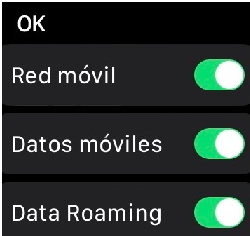 La opción de configurar datos móviles no esta disponible en la app del watch y dice "No es posible utilizar datos móviles con el Apple Watch en itineraria internacional".