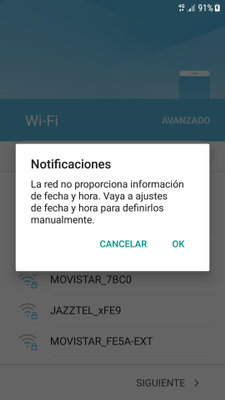 "La red no proporciona información de fecha y hora" a Samsung galaxy S8+