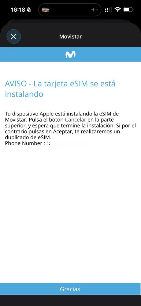 AVISO: Tu dispositivo apple esta instalando la eSim de Movistar. Pulse cancelar de la parte superior,…..etc…pero no avanza.