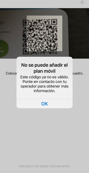 Servicio multiSIM contratado - QR eSIM no válido para crear plan móvil y convertir SIM física en eSIM