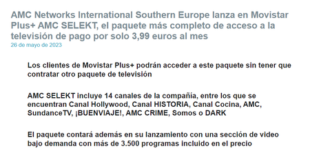 Comentarte a ti y a los demas que lo de los 3.99€ es solamente si tienes fibra sino ni eso. Los que vivan en zona NO fibra (Internet Radio) ya se pueden ir olvidando de verlos porque de momento no sera posible. La ironia es que muchos podrian ya que tienen 4G pero por politica de empresa AMC & M+ no va a ser posible.