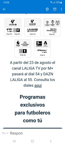 Hola,en un mail enviado por Movistar informando del inicio de la liga y como verla,se informa de que el canal Laliga Tv por movistar pasa al dial 54,y Dazn la liga al 55 ,el proximo 23 de agosto.Porq...