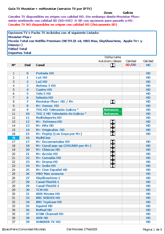Si no recuerdo mal había ya una entrada sobre este tema en la que se iba actualizando el listado poniendo los canales en HD que iban llegando, pero no encuentro esa entrada con el listado actualizado, por eso lo pongo aquí como una entrada nueva, y si podéis poner la lista actualizada de canales en HD aquí o unir esta entrada mía a la que este el listado completo y actualizado hasta el día de hoy con todos los canales HD que tiene Movistar+. Muchas gracias de antemano y un saludo.