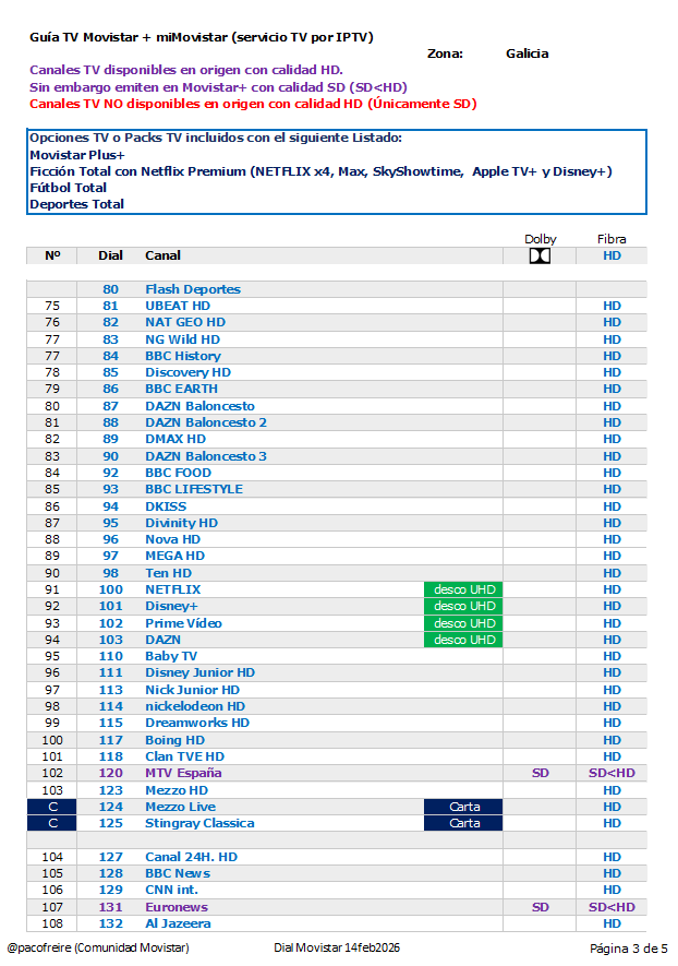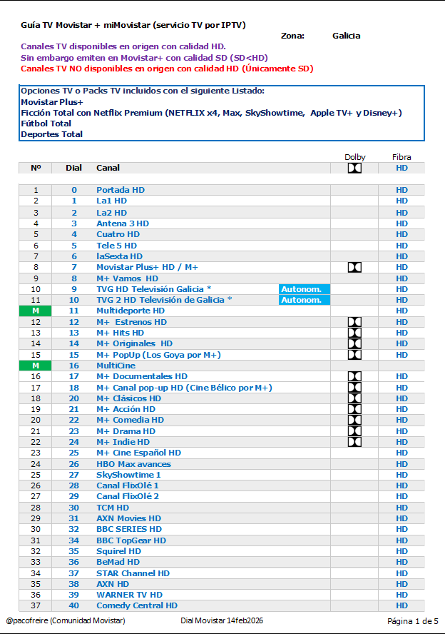 Nuevo Listado con la Guía de Canales de Movistar Plus+ actualizada (TV por IPTV mediante Fibra y desco UHD)