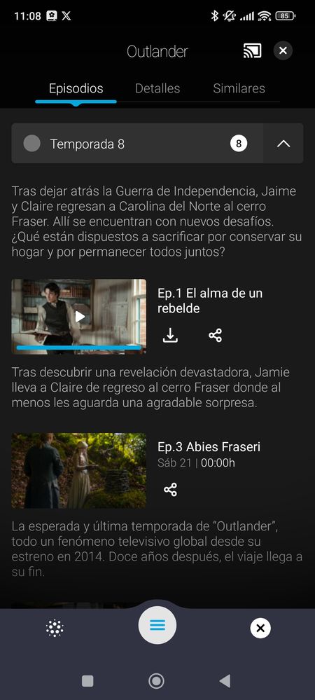 ¿Es un error de programación? Normalmente los episodios de Outlander T8 están disponibles en VOD el día de estreno.