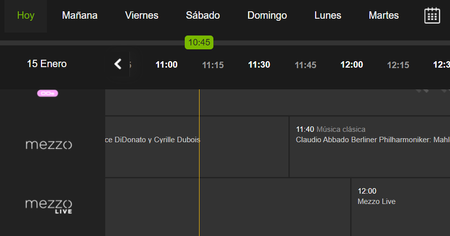 La programación de ese canal a partir del día de hoy es inexistente, simplemente pone "Mezzo Live" por lo que no se puede programar nada:   Gracias.