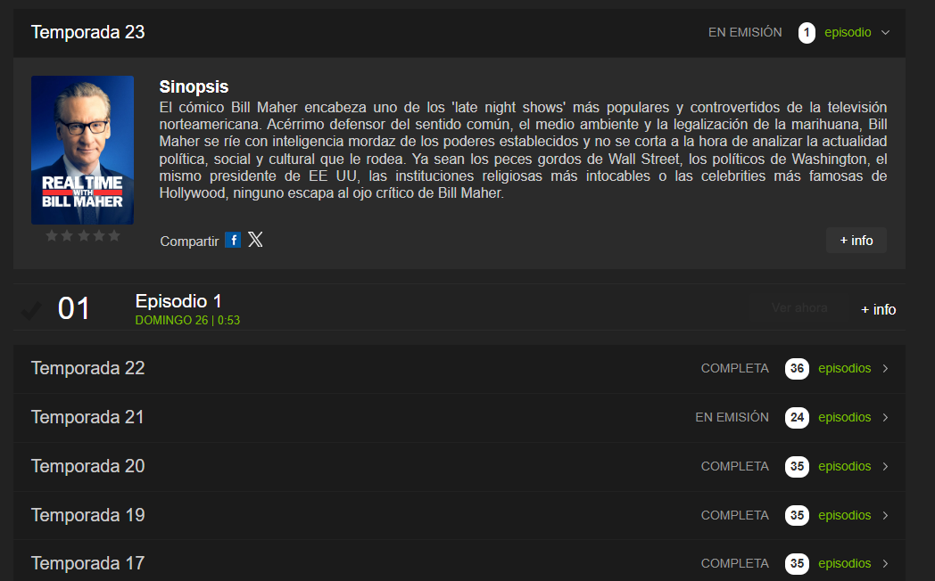 Real Time se emite el próximo domingo y Last week tonight no ha empezado la nueva temporada.