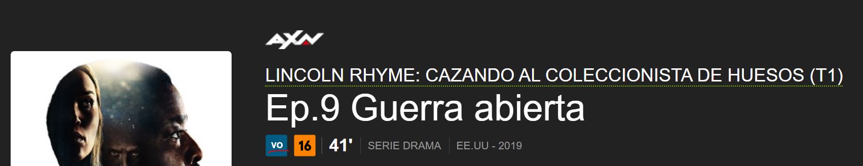 Estoy siguiendo la serie Lincoln Rhyme: Cazando al Coleccionista de Huesos y el último episodio disponible está solo en versión original con subtítulos en castellano.