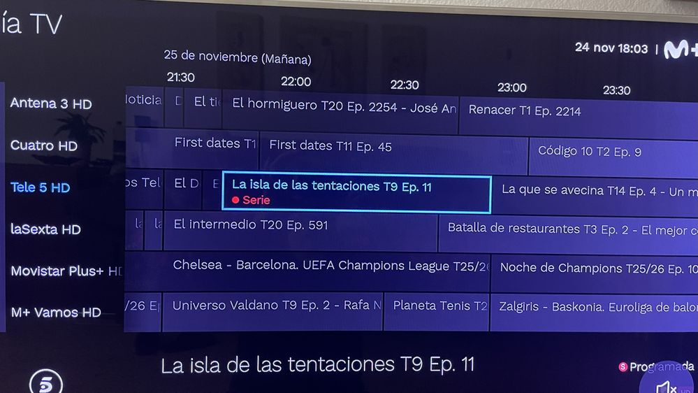La programación de 'La isla de las tentaciones' para hoy está como Temporada 8 cuando es la Temporada 9, al miércoles le pasa lo mismo, es más la semana pasada ya pasó el Martes, la grabé como Temporada 8, modificasteis la temporada a posteriori y no la pudimos ver como grabación.