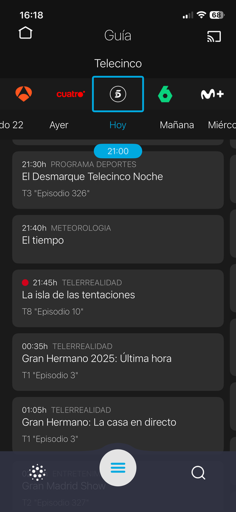 La programación de 'La isla de las tentaciones' para hoy  está como Temporada 8 cuando es la Temporada 9, al miércoles le pasa lo mismo, es más la semana pasada ya pasó el Martes, la grabé como Tempo...