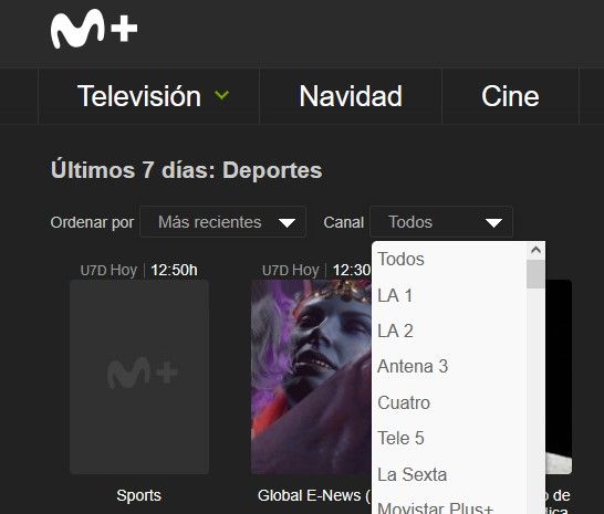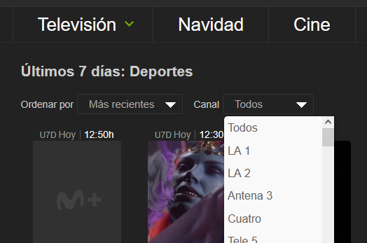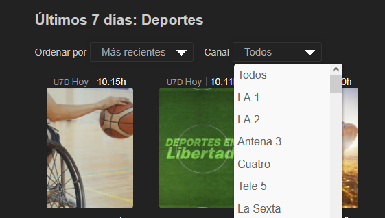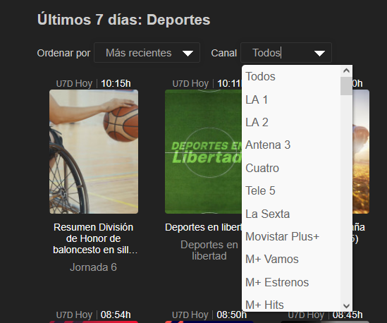 en U7D, deportes han cambiado de filtrar por "tipo" (Futbol, baloncesto, balonmano) a por canal (tve1, vamos, eurosport,...).