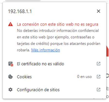 Buenas tardes. Al acceder al router desde windows con 192.168.1.1 me dice que la dirección no es segura, nunca me había ocurrido.